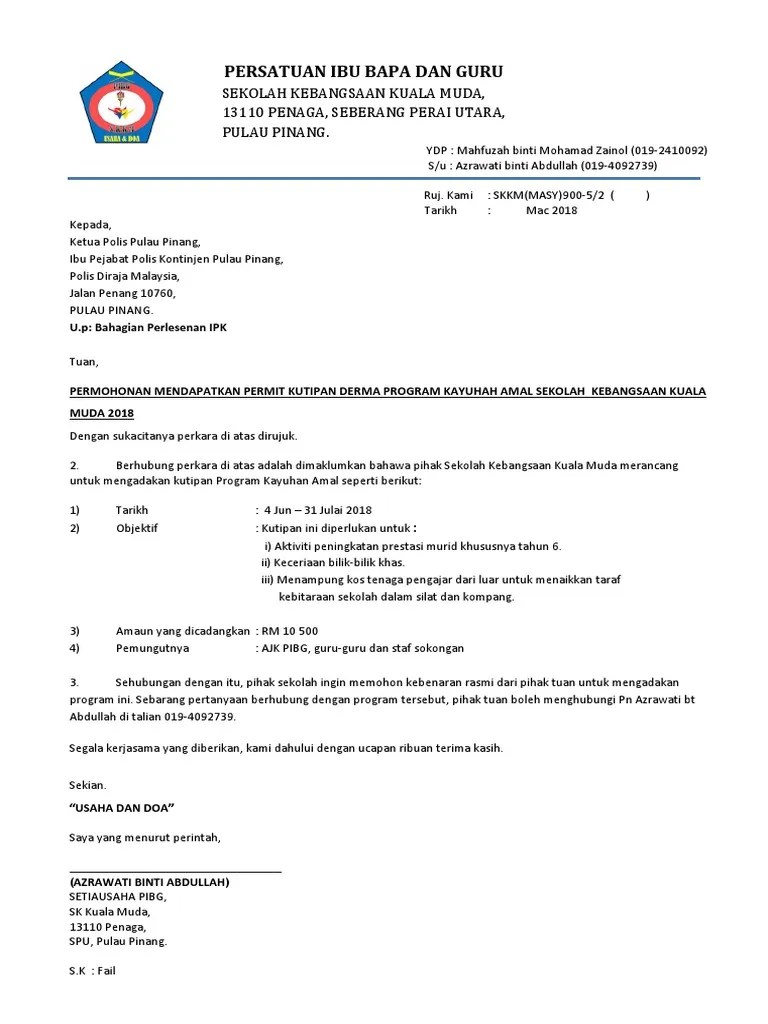 01.06.2016 · ketika kita akan melakukan suatu kunjungan, baik dalam rangka bisnis, edukasi ataupun rekreasi kepada suatu tempat seperti instansi, museum, atau tempat rekreasi lainnya yang tidak dapat sembarangan orang masuk, kadang kita membutuhkan surat permohonan kunjungan untuk memohon dan memberitahukan bahwa kita akan melakukan kunjungan … 15.06.2020 · yuran rm2700 atau rm500x6 bulan (dah masuk pendaftaran & sijil).